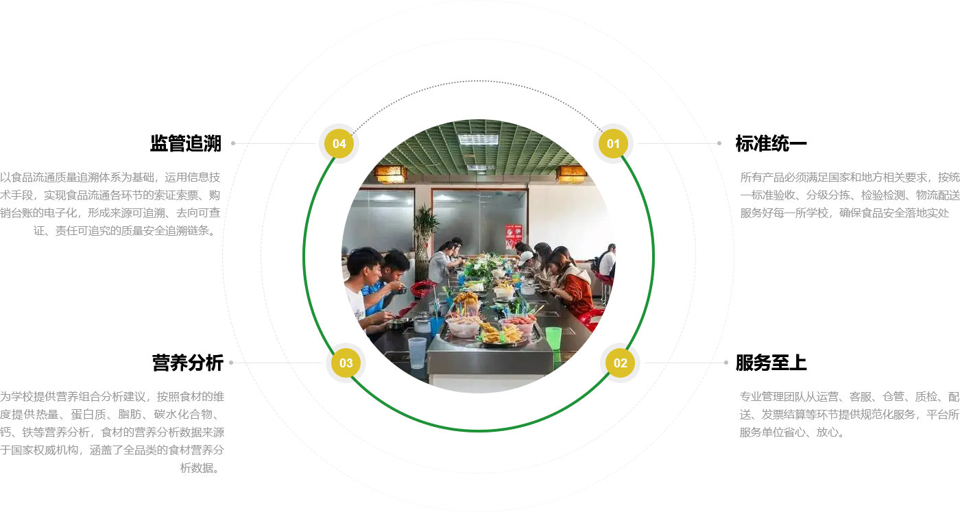 ayx手机版登录入口校园营养餐聚焦中小学,着眼公共食堂食品安全,依托标准的运营与严格的管理,以数字化食安监管平台为核心,确保食材供应实现全溯源、全检测, 保障食品安全,用心关爱学生每一餐。